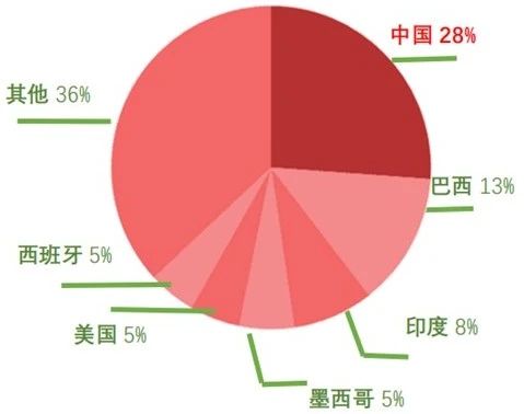 柑桔是世界第一大水果,面積和產(chǎn)量均居世界各類水果之首。目前,中國(guó)柑桔產(chǎn)量占比全球約28%左右,持續(xù)保持世界柑桔種植面積、產(chǎn)量雙首位。