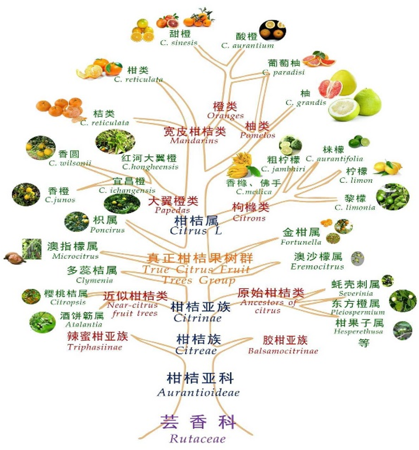 柑和桔二者常統(tǒng)稱為“柑桔”,屬于蕓香科(Rutaceae)柑桔屬木本植物,共有17個(gè)種,分成6個(gè)種群:大翼橙類、宜昌橙類、枸櫞檸檬類、柚類、橙類和寬皮桔類。柑桔類水果主要包括:桔、柑、柚子、葡萄柚、枸櫞、甜橙、酸橙、金柑、檸檬等,其中最具經(jīng)濟(jì)價(jià)值和食用價(jià)值的依次是甜橙、桔、柑、柚子、檸檬等。
