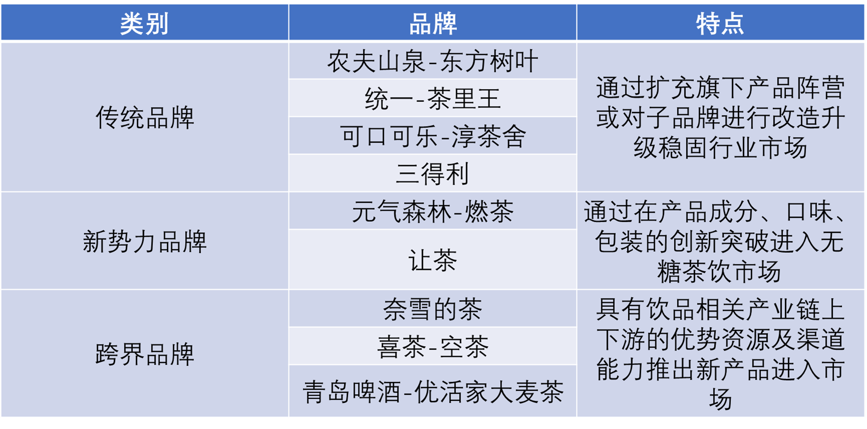 無糖茶產(chǎn)品的爆火,讓其他行業(yè)的品牌巨頭們紛紛跨入,憑借其供應(yīng)鏈優(yōu)勢(shì)及渠道能力進(jìn)入無糖茶市場(chǎng)。